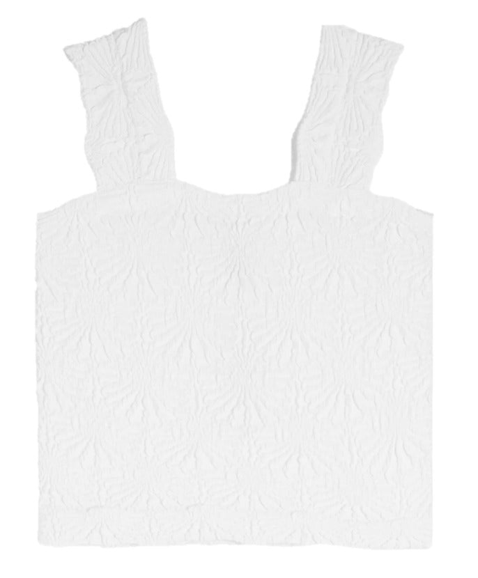 Suzette -Seamless Floral Textured Tank-White