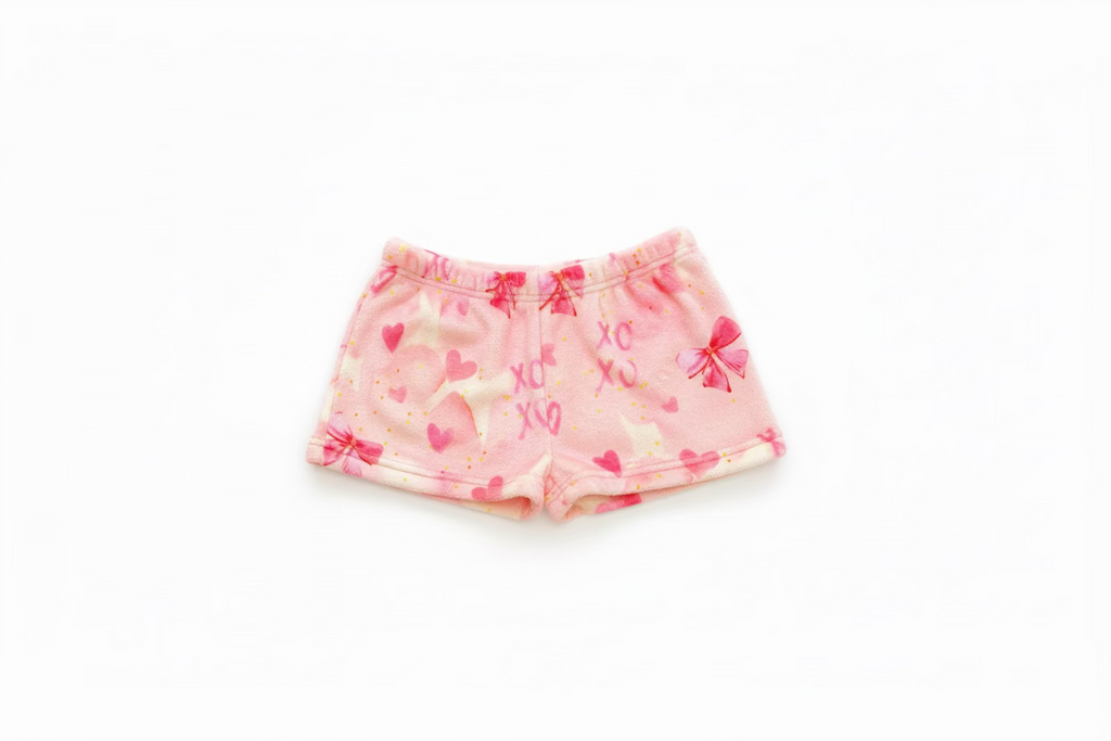 Preppy Goose - Bow Print Loungewear Plush Shorts