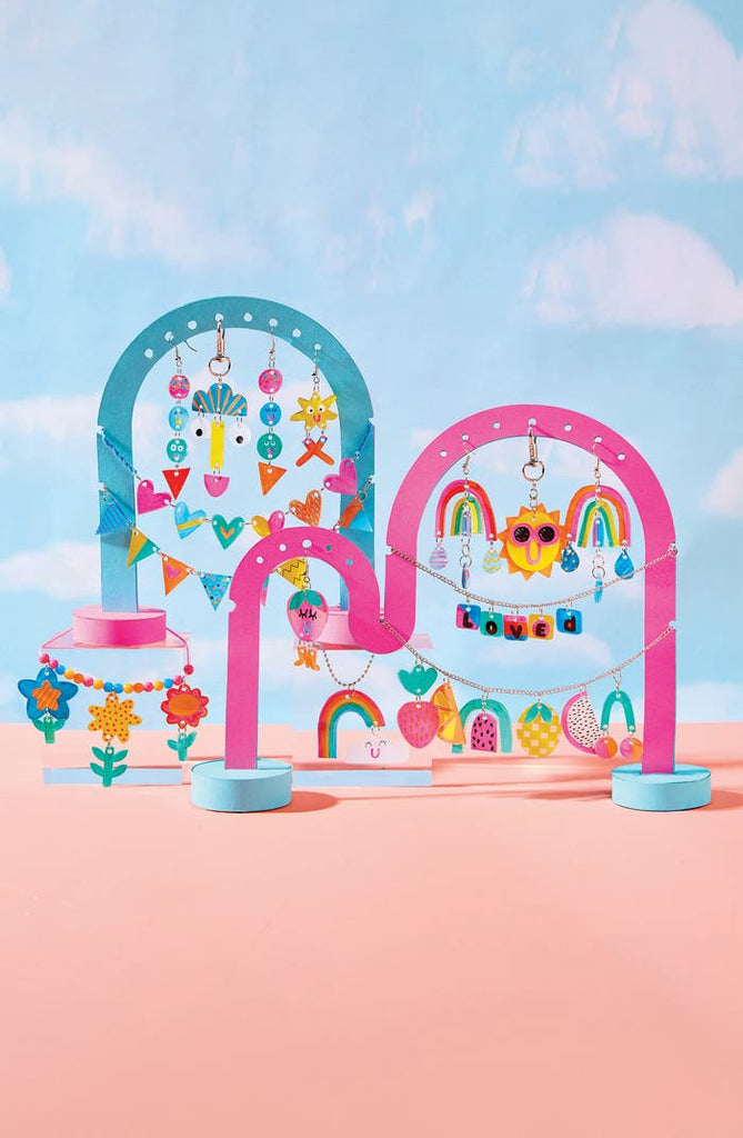Have an adult help you BAKE the shapes in a conventional or toaster oven. (NOT air fryers or microwaves!) Then assemble bag charms, bracelets, necklaces and earrings!