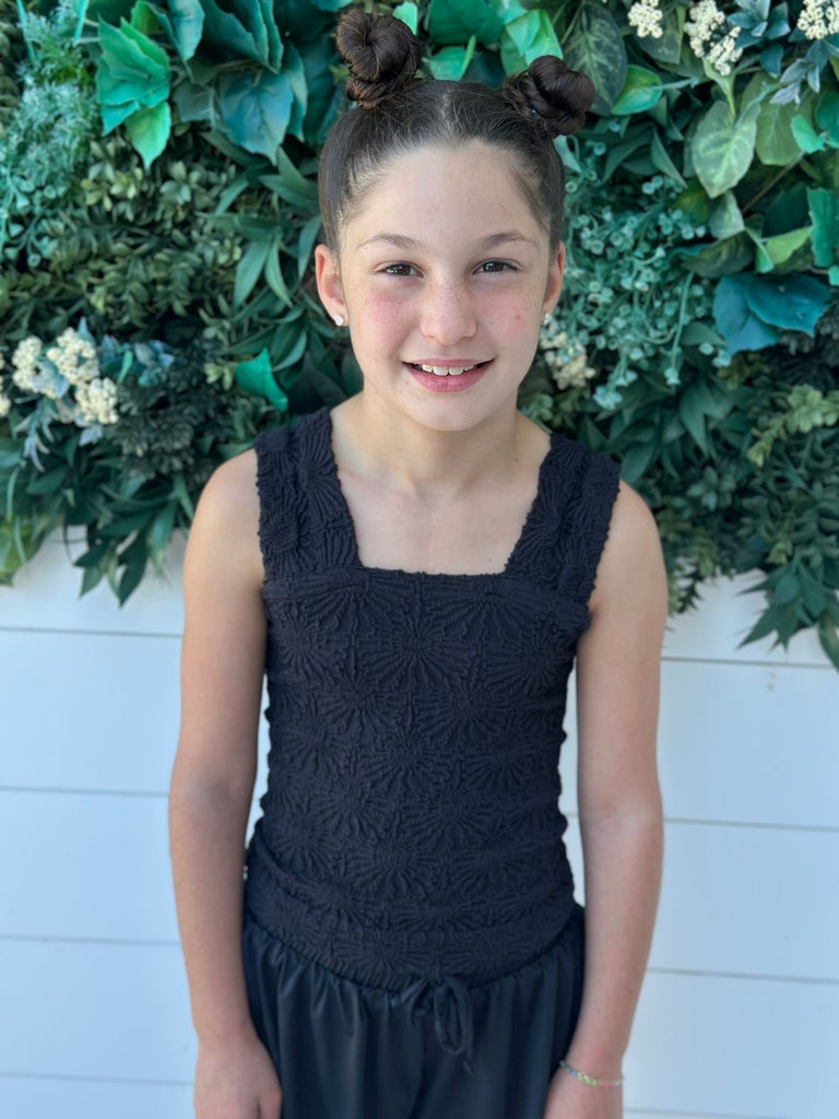 Suzette - Seamless Floral Textured Tank -Black