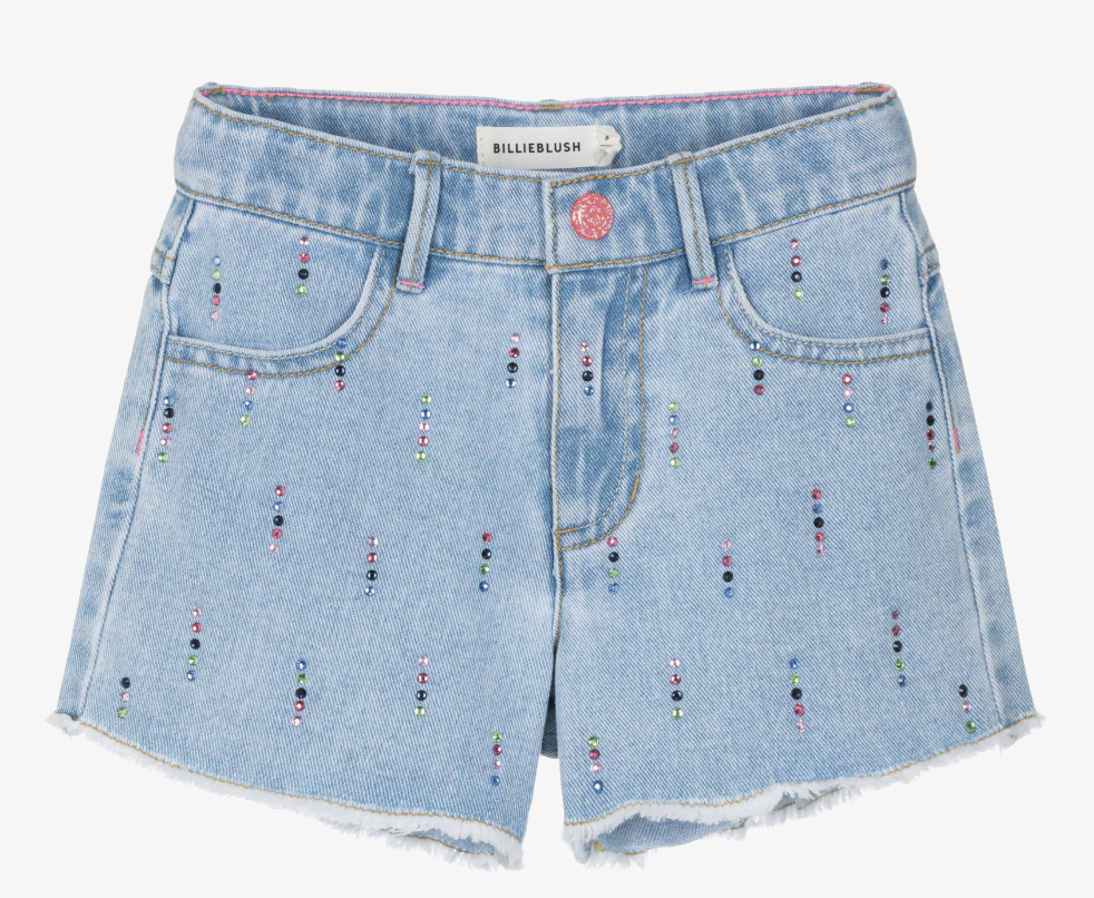 Billieblush - Blue Denim Shorts with Colorful Rhinestones