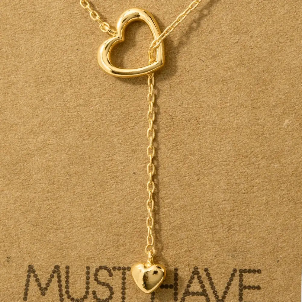 This trending necklace brings a luxurious gold dipped dainty heart lariat necklace style. Witness the transformative power of accessories as this piece effortlessly redefines your fashion narrative.